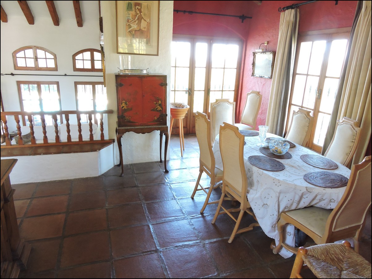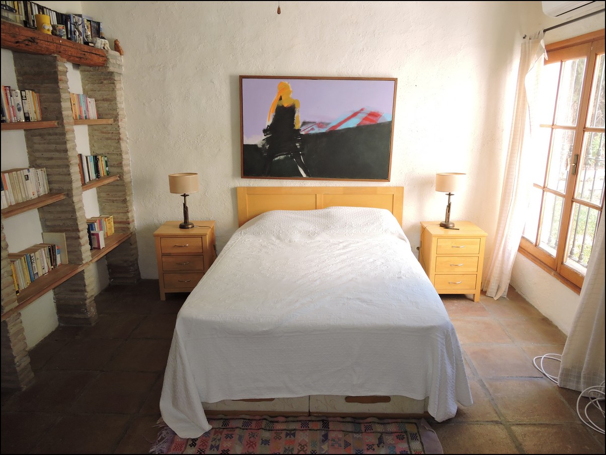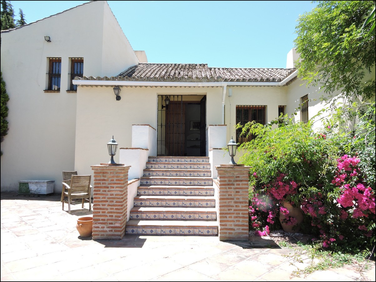 • Overview: Large 5 bed / 3 bath villa in the exclusive urbanisation of Don Pedro Estepona, located in an ideal and very private location, but close to Estepona, Sabinillas, Marbella or Gibraltar. Amazing architecture in this high standard 80s independent villa with private pool and with sea views! Total plot is 1520M2 and the house is built 274M2 + another downstairs studio. The studio is about 60M2 and has its own bathroom and separate entrance. The main house has a total of 4 bedrooms and 2 bathrooms. They are all very large and with built-in wardrobes. Large living room with a beautiful big fire place that will heat the whole house in the winter period and ceilings of about 5meters high, fantastic architecture, lots of natural light. Perfect for a Spanish home. The house is situated on different levels, so you will walk up and down some stairs when you want to go from the living to the kitchen or from the entrance to the bedrooms. Next to the already large living space you have another separate area to quietly read a book and enjoy this wealthy feeling. From the living area you walk out into your private plot with private swimming pool. Very nice entertainment area with built-in barbecue and even some sea views! The garden itself is lovely, green, well taken care of and not of huge maintenance. Up from the living room you have a dining area and a large open fully fitted kitchen; this would need some modernization, but is nice and fully functional. All bedrooms have air condition installed. A beautiful and spacious villa in a quiet location, only 5 minutes drive from the beach. The urbanization is very secure and has security cameras. Outside space for two cars underneath a covered parking area and the house will be sold fully furnished. Easy to visit, if you have any further questions, do not hesitate to contact us now..