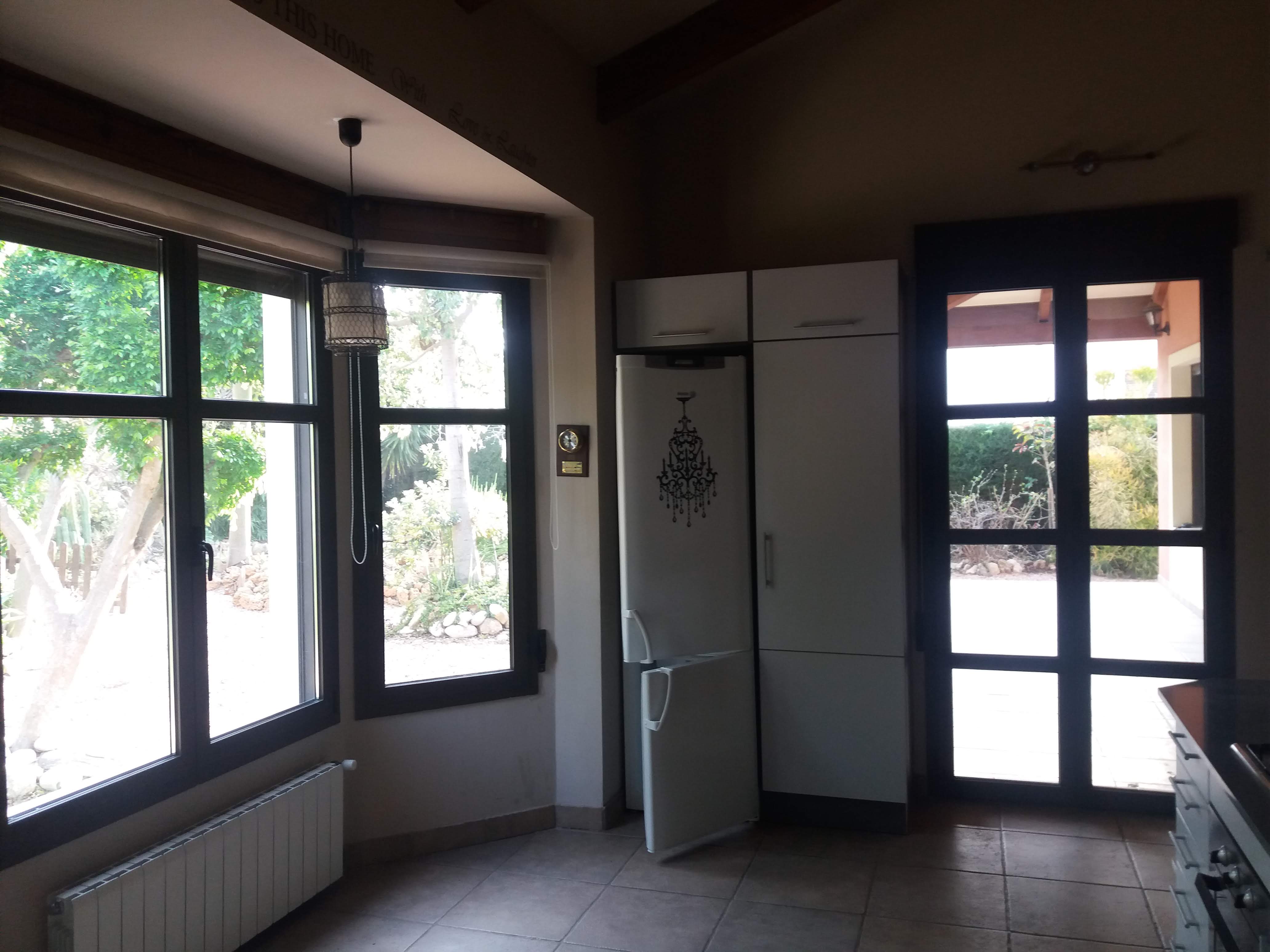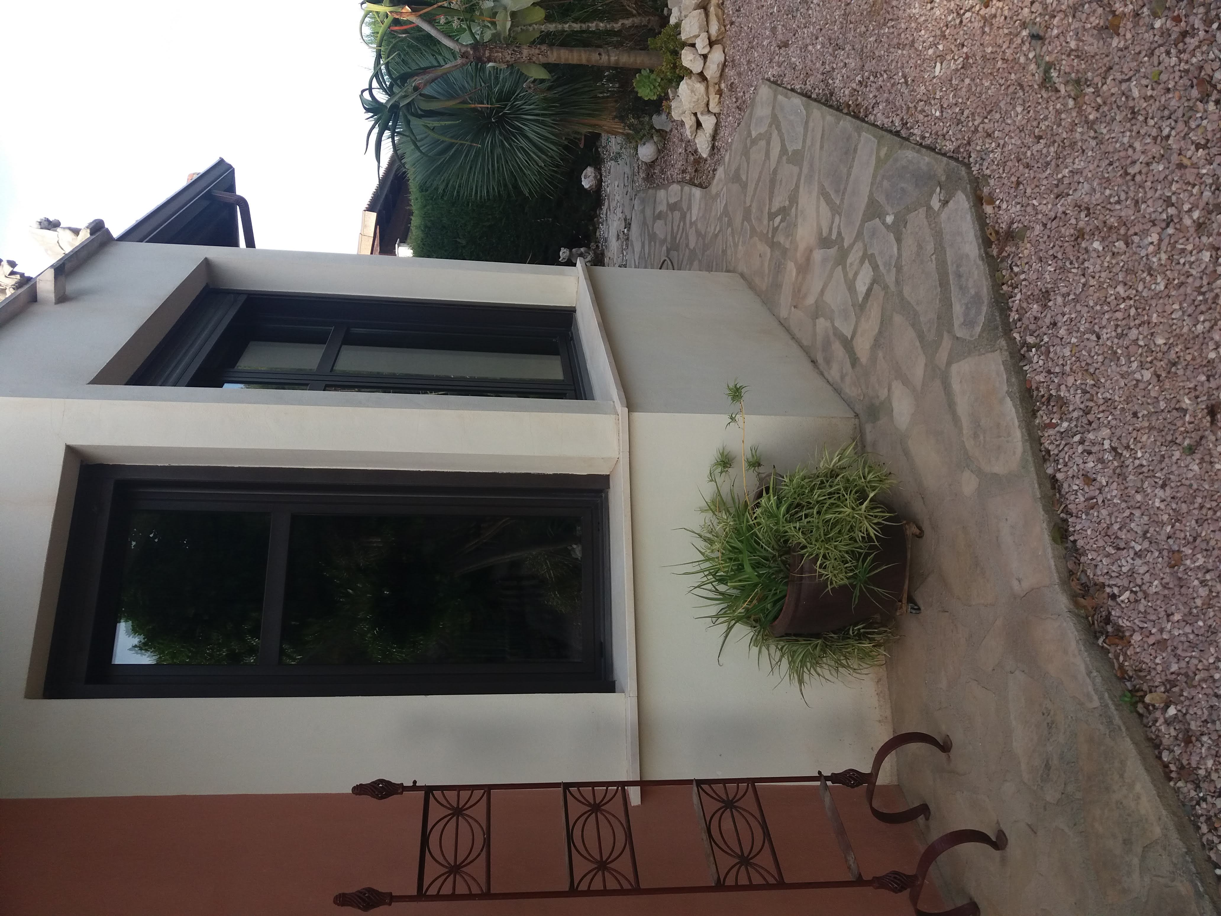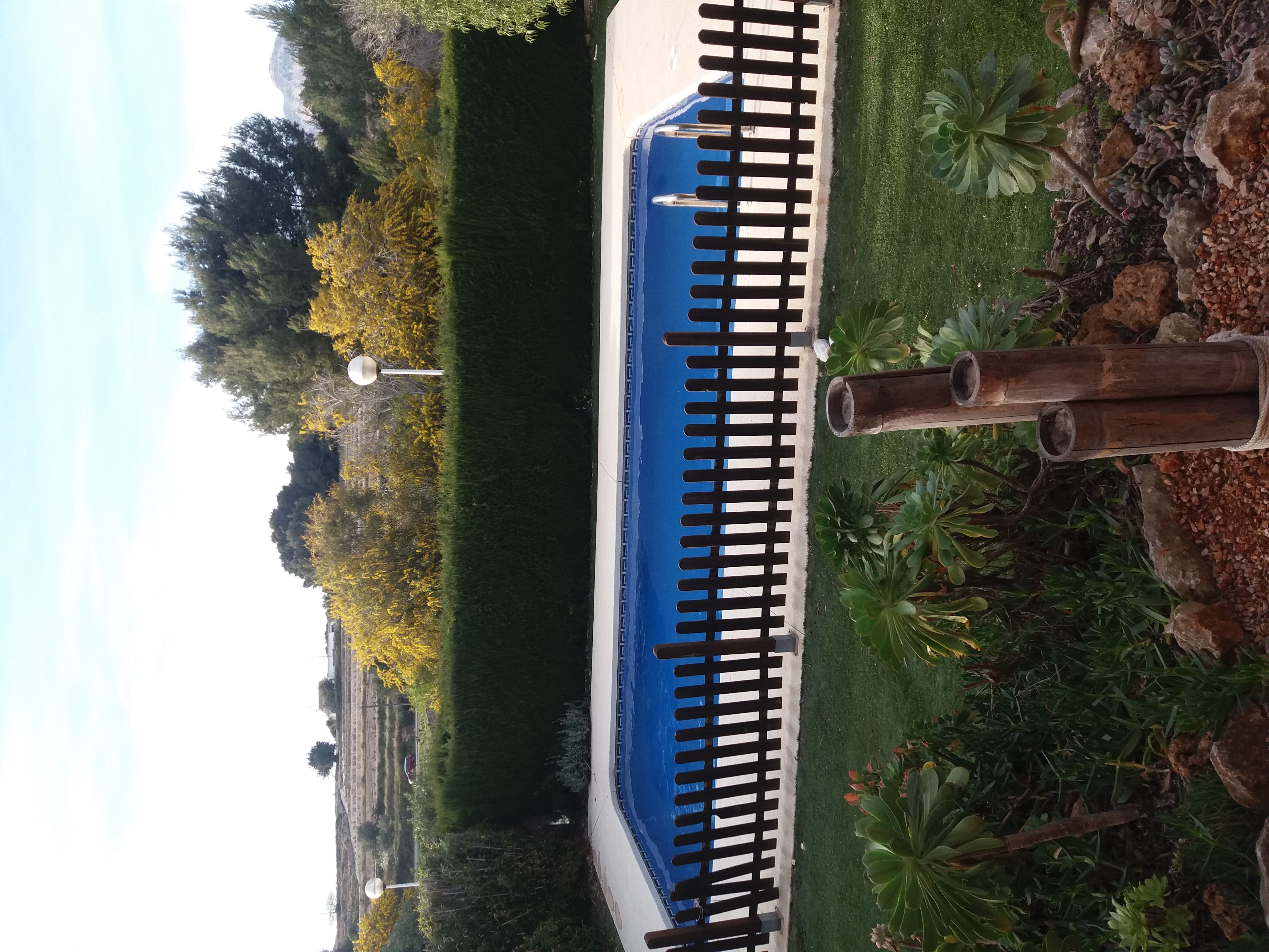 • Overview: Available per 1st oktober 2020: A 3 bedroom, 2 bathroom villa with heigh ceilings, double glased windows, shutters, kitchen, washroom, fireplace. The modern warm looking villa is 180m2, all on one level but in the livingroom via stairs you can go up. This extra upper level is perfect to use as office, playroom, extra storage or even 4th guest bedroom. There is gas central heathing. The plot is 1000m2, pool 8×4 fully fenced in pool and fenced in garden. Therefor the house is suitable for a family with children and dogs. The garden is mature and contains palm, passion trees and a range of exotic cactusses. The villa and garden are well maintained and ready to move in. The house is unfurnished..