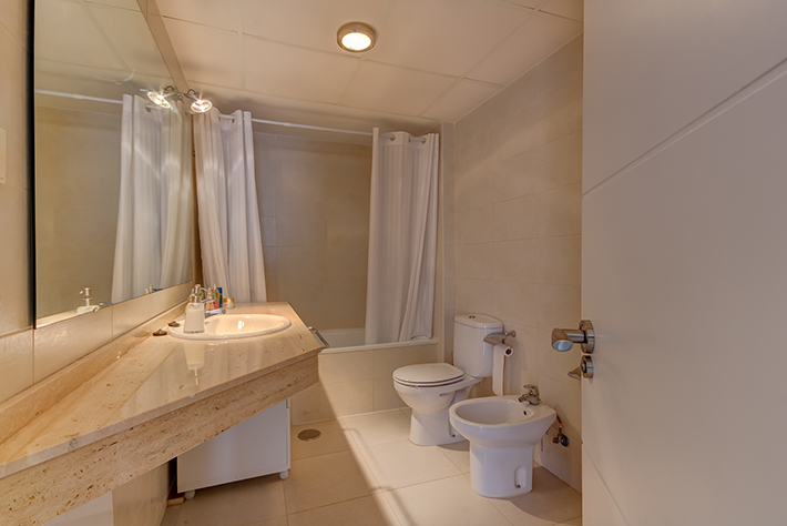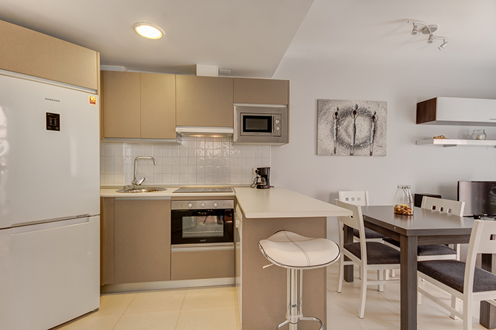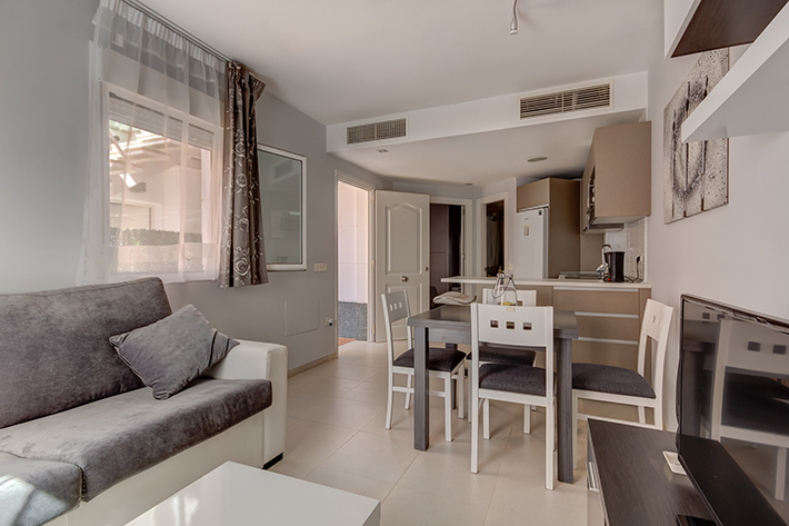 • Overview: Fully furnished apartment on the ground floor with 1 bedroom and 1 bathroom, located in the urbanization Laguna Beach just 300 m from the beach. This property is sold including underground parking space. Through the patio at the side of the apartment you reach the front door which opens into the living-dining room and open kitchen with all appliances: ceramic hob, extractor fan, electric oven, microwave and fridge / freezer combination. In addition, you will find a double bedroom with closet and a bathroom with bath, where the washing machine is installed in the closet. The apartment has central air conditioning (cold / hot), double glazing and shutters. Laguna Beach is a well maintained urbanization with security, communal swimming pool and children's pool. The underground parking garage is accessible by lift, making it easier for residents with reduced mobility. In the immediate vicinity you will find several restaurants, bars, shops and the beach is only 300 meters away..